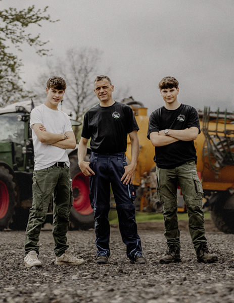 Bei uns helfen alle Familienmitglieder zusammen, wenn es um die Arbeiten rund um den Hof geht. Wir führen unseren Hof bereits in dritter Generation als Familienbetrieb. Die Spezialisierung zur Schweinehaltung begann 1955 mit dem Einstieg in die Schweineherdbuchzucht. 1969 wurde die Rinderhaltung abgeschafft und die Schweinehaltung in den darauffolgenden Jahren kontinuierlich ausgebaut. 2000 übergab Franz Steinle den Betrieb an Sohn Winfried. 2002 wurde der erste Schweine- und Maststall im Außenbereich Pfraunstettens gebaut. In den Jahren 2006 bis 2012 erweiterten wir dort mit dem Bau eines weiteren Ferkelaufzuchtstalls und eines Getreidelagers. Auch unsere Söhne Aaron und Jonathan zeigen großes Interesse an der Landwirtschaft: Aaron befindet sich in der Ausbildung zum Landwirt und Jonathan strebt dies nach seinem Abschluss ebenfalls an.
