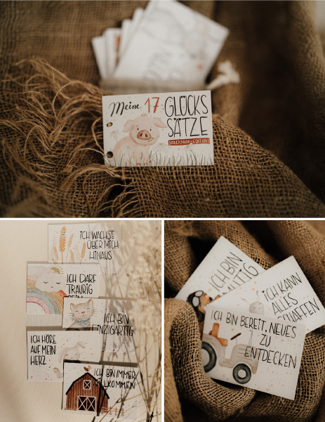 Unsere Glückssätze sind ein tolles Werkzeug, um Kinder emotional zu stärken! Sie helfen schwierige Entwicklungen & Herausforderungen im Leben zu meistern und unterstützen das Selbstvertrauen von Kindern. Die regelmäßige Anwendung positiver Glückssätze bestärkt Kinder im Selbstvertrauen, in Achtsamkeit, Liebe und in einem guten Umgang mit starken Gefühlen.