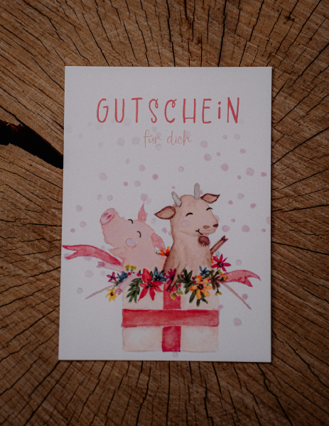 Bereiten Sie Freude und verschenken Sie einen Gutschein für unsere Bauernhoferlebnis-Programme! Der Gutschein kann für den Ferienspaß, Kindergeburtstage oder die Jahreszeitengruppe eingesetzt werden. Kinder, die einen Gutschein haben, haben bei der Anmeldung Vorrang.